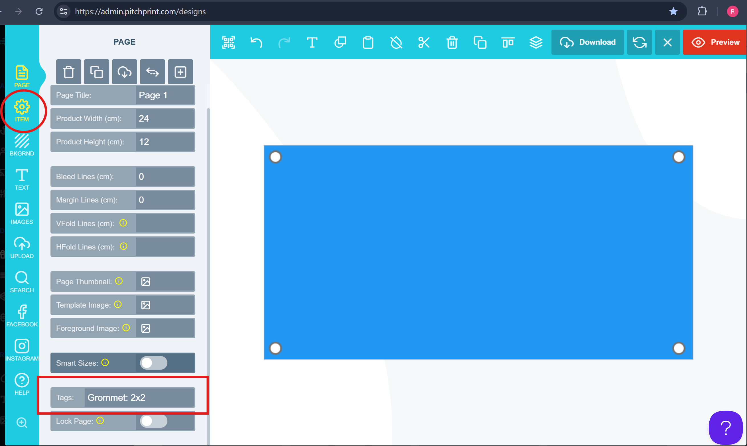 - Enter your grommet tag as shown below.